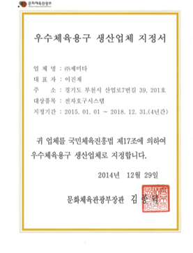 Excellent Sporting Goods manufacturer recognized by Korean government